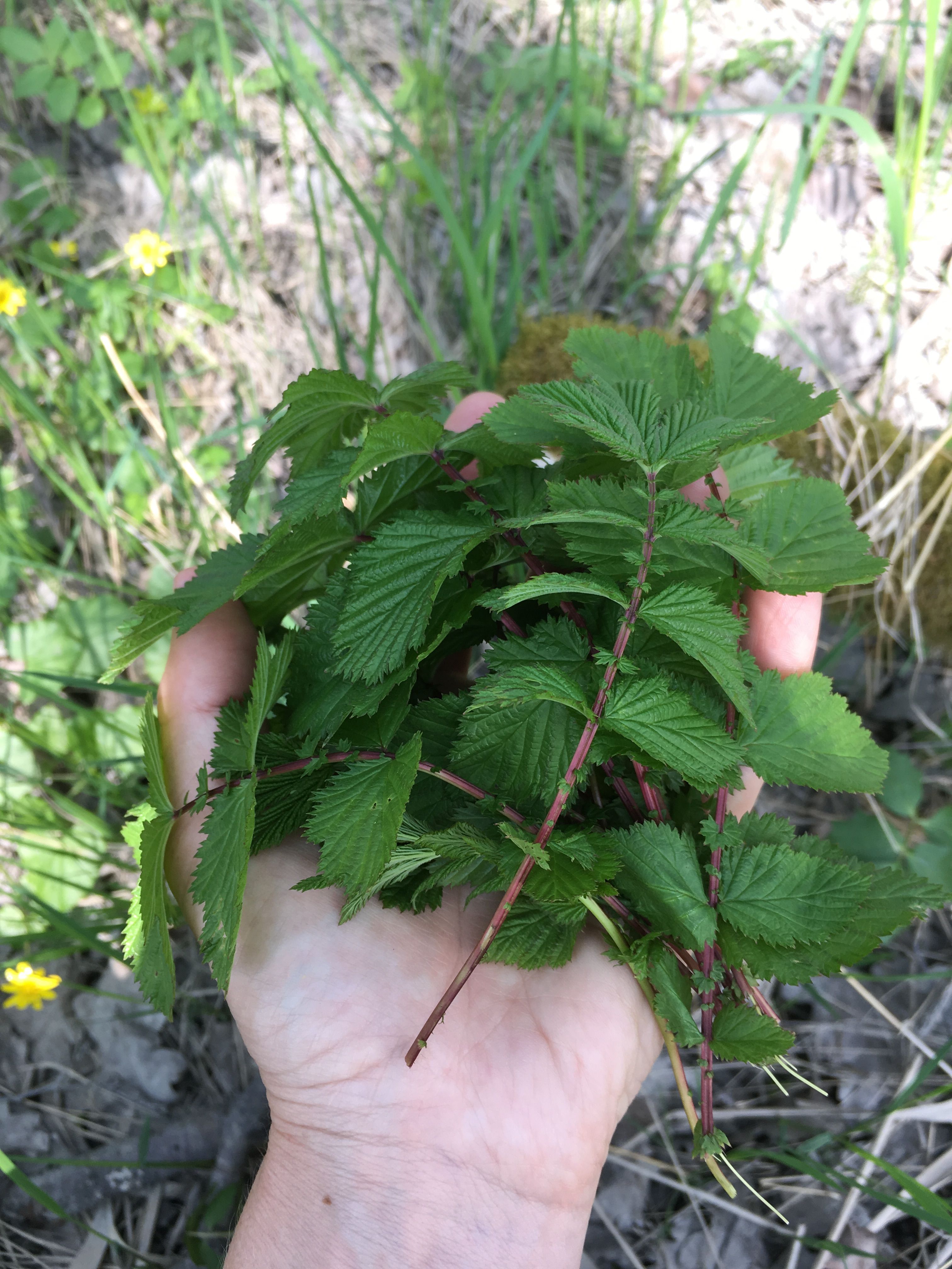 Bladene er lette å kjenne igjen på den røde stilken. Bladet har ulikefinnete blader/hovedfinner, og små bladfinner som sitter.