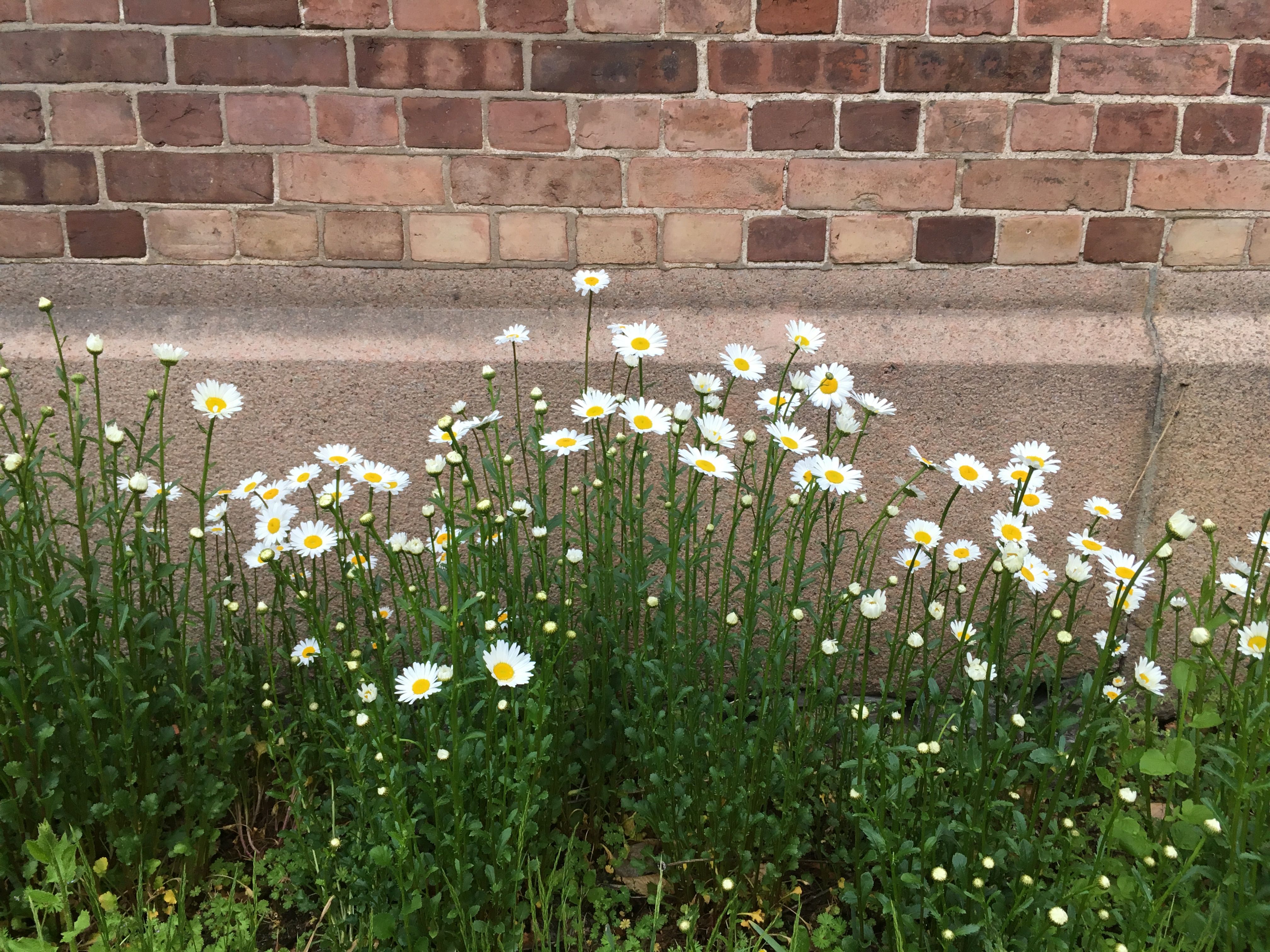 Enkel rad av hvite kronblader i omkrets rundt blomsterhodet.